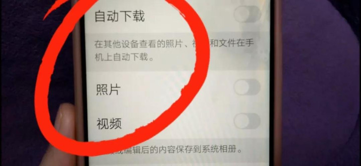 那么在上方这里就可以看到有一个自动下载、照片、视频这三个按钮,我们一定要把它关闭了。关闭了之后,那么我们在其他设备上查看的照片、视频、文件就不会在手机上自动下载到相册里面,占用我们手机的内存空间了。