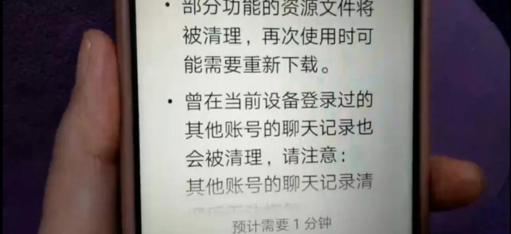 但是在这里需要注意的是,如果说你在当前设备登录过的其他账号上的聊天记录会被清除了。因此大家也要注意一下,如果说在这个账号上有一些聊天记录很重要的话,清理后就无法恢复了。因此大家一定要注意了。