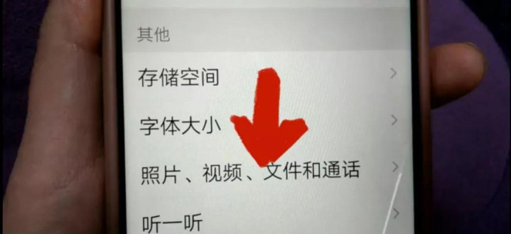 那藏在哪里呢?我们打开手机下方的设置,再打开这里的“通用”,然后看下方这里有一个“照片、视频文件和通话”。我们再把它打开。